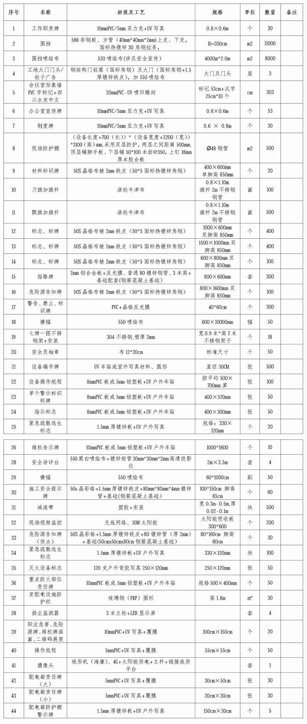 金堂縣沱江干流河道疏浚工程安全標準化建設(shè)定制清單: