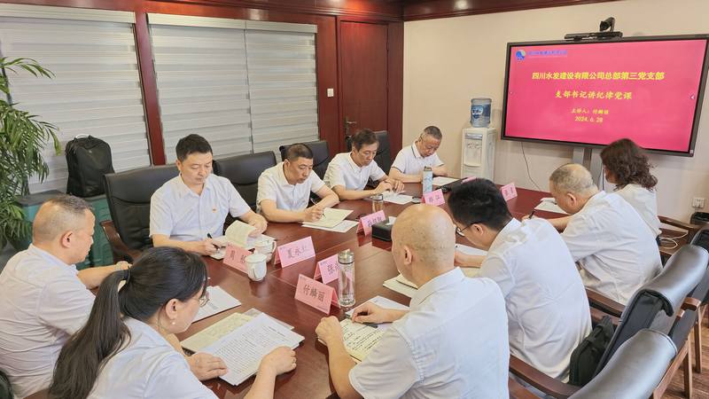2024年6月28日,集團黨紀學習教育工作專班成員,組織人力資源部副部長周彤到建設公司總部第三黨支部列席暨指導支部書記講紀律黨課。