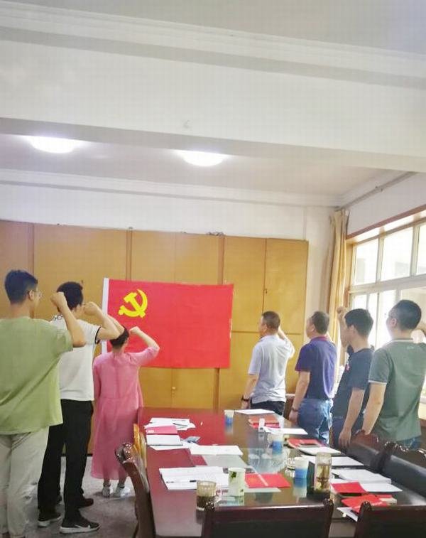 會議最后,面對鮮紅的黨旗,在丁毅的領誓下,大家再次許下了莊嚴的承諾:“我志愿加入中國共產黨,擁護黨的綱領,遵守黨的章程,履行黨員義務,執行黨的決定,嚴守黨的紀律,保守黨的秘密,對黨忠誠,積極工作,為共產主義奮斗終身,隨時準備為黨和人民犧牲一切,永不叛黨”。
