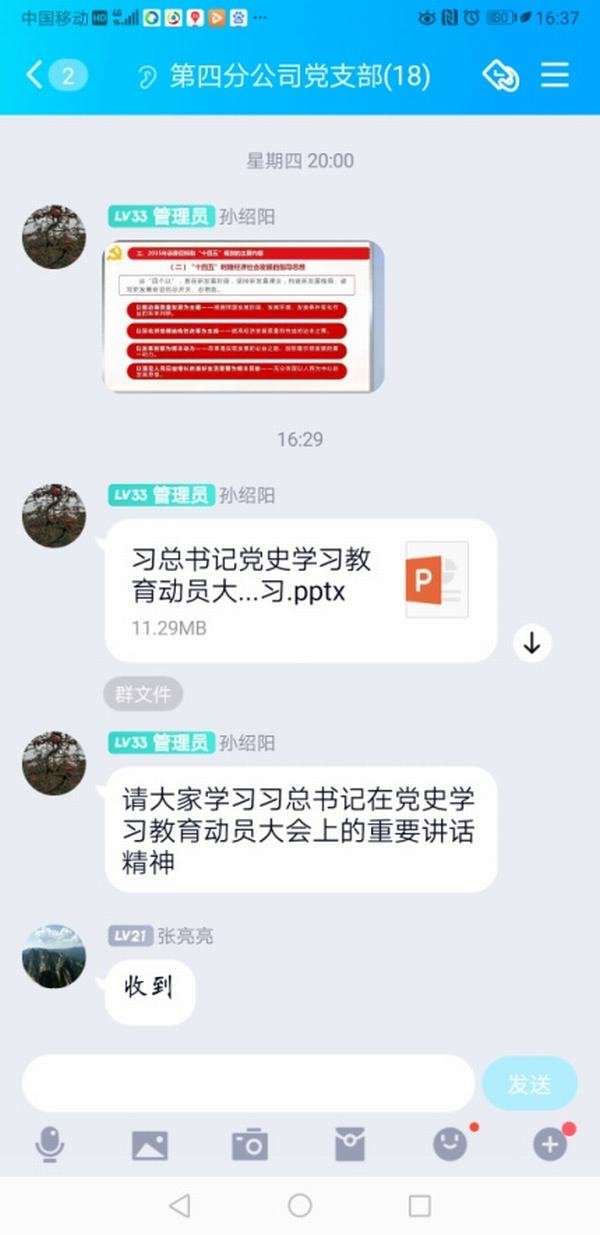 四分公司利用黨支部QQ群開展黨史學(xué)習(xí)教育