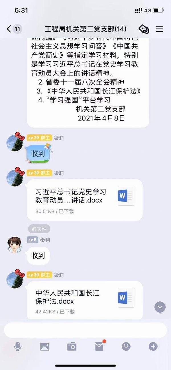 機(jī)關(guān)第二黨支部利用支部QQ群對黨史學(xué)習(xí)教育作出要求(2021.04.08)