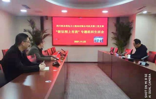 2021年11月22日,為弘揚“自力更生,艱苦創(chuàng)業(yè),團結協(xié)作,無私奉獻”的紅旗渠精神,按照川水黨[2021]147號文件要求,公司機關第三黨支部在成都總部會議室和資陽辦公區(qū)301會議室召開“新征程上有我”專題組織生活視頻會議。公司總工程師、副總經(jīng)理汪輝德,副總經(jīng)理董蜀良以普通黨員身份參加會議。支部書記丁毅主持會議。