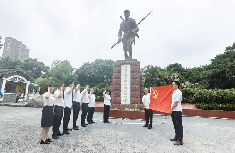在“川軍抗日陣亡將士紀(jì)念碑”前,在支部書記付麟麗的領(lǐng)誓下,集體重溫入黨誓詞;公司領(lǐng)導(dǎo)夏永紅結(jié)合黨紀(jì)學(xué)習(xí)教育,以《做一名合格的共產(chǎn)黨員》為題作專題黨課報告,分享學(xué)習(xí)運用黨的創(chuàng)新理論的收獲體會;青年黨員蘇凡以《踐行使命擔(dān)當(dāng),實干無悔》為題作黨課報告。