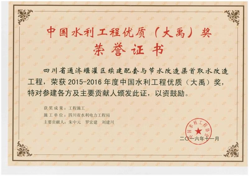 中國水利優質工程大禹獎