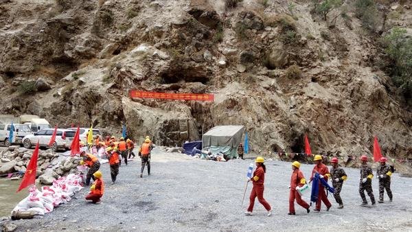 為了圓滿完成任務,項目部在應急演練前對各環(huán)節(jié)作了周密部署,先后完成了防洪度汛應急預案、演練方案的編制、度汛設備物資準備、人員動員、預演等工作。實施過程中,主要進行了洪水到來前的預警、人員逃生、現(xiàn)場應急搶險、設備物資撤離、人員受傷救護等科目的演練。