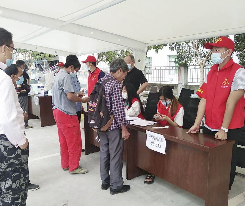9月7日,天剛蒙蒙亮,鎮(zhèn)政府工作人員、社區(qū)工作人員、項(xiàng)目部黨員志愿者、衛(wèi)生院醫(yī)護(hù)人員和項(xiàng)目部黨員志愿者一大早在項(xiàng)目部辦公樓后的大院集合,按照具體分工,緊鑼密鼓地做好了各項(xiàng)準(zhǔn)備工作。早上7點(diǎn),當(dāng)?shù)卮澹ň樱┟窬完戧懤m(xù)續(xù)地來(lái)到項(xiàng)目部大院,首先在入口處按照提示掃場(chǎng)所碼,然后進(jìn)入核酸檢測(cè)點(diǎn)現(xiàn)場(chǎng),黨員志愿者們堅(jiān)守在各自崗位上,有人在維護(hù)秩序、有人在信息采錄、還有人在應(yīng)急保供,有人在耐心幫助不熟悉核酸程序的老年人,現(xiàn)場(chǎng)做核酸檢測(cè)的村(居)民積極配合,有序排隊(duì)做核酸檢測(cè)。