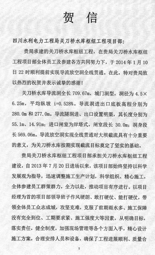 安岳縣思源水利建設投資開發有限公司致工程局賀信