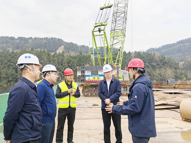 楊志文一行深入建設公司承建的觀音寺渡槽施工現場,實地察看了數字化鋼筋綜合加工廠、中心實驗室、空心墩墩身、鋼棧橋等位置,同時聽取項目管理人員對亭子口灌區一期工程I標段工程概況、關鍵性工程觀音寺渡槽概況的匯報,詳細了解了項目的建設進展、數字化運用、質量管理、配套設施等實際情況,并就項目的規劃設計、施工方法、建設意義等方面進行了探討交流。