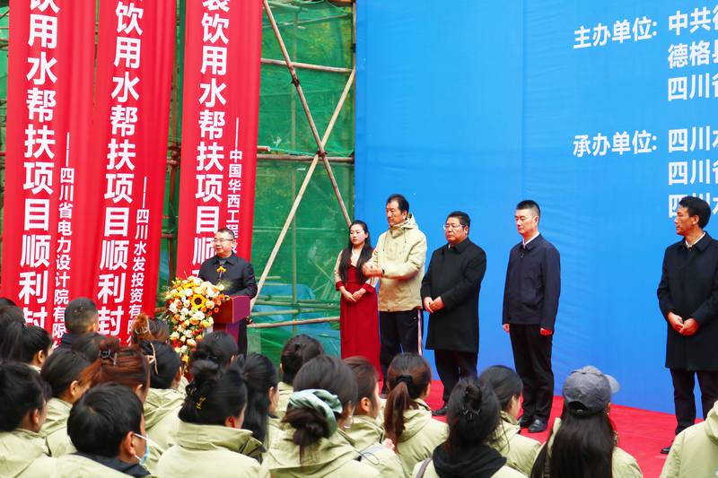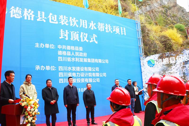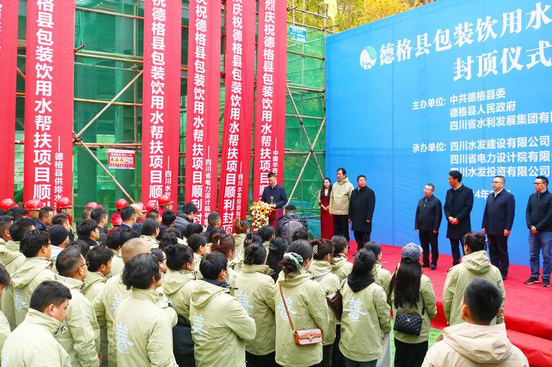 德格縣縣委書記昌呷次稱在講話中代表縣委、縣政府以及德格縣父老鄉(xiāng)親向蒞臨出席活動(dòng)及關(guān)心德格縣發(fā)展的領(lǐng)導(dǎo)、來賓表示衷心的感謝和崇高的敬意。他強(qiáng)調(diào),水發(fā)集團(tuán)堅(jiān)決貫徹省委部署要求,傾注真情實(shí)感、投入真金白銀、用力真幫實(shí)扶,不斷為鞏固拓展脫貧攻堅(jiān)成果、全面助推德格縣鄉(xiāng)村振興注入新動(dòng)力。下一步,期望各方進(jìn)一步加強(qiáng)工作統(tǒng)籌、力量統(tǒng)籌和資源統(tǒng)籌,攜手構(gòu)建高質(zhì)量發(fā)展共同體,讓愛心永放光芒、讓真情共筑希望,共同譜寫德格縣高質(zhì)量發(fā)展新篇章;最后,熱烈祝賀并宣布德格縣包裝飲用水幫扶項(xiàng)目封頂儀式圓滿禮成。
