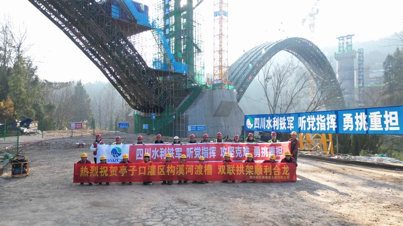 蛇年開新局,齊力創佳績。2025年1月16日上午10時,隨著鋼箱拱合龍段順利吊裝到位,由公司承建的亭子口一期工程第I標段構溪河渡槽雙連拱懸拼鋼拱架合龍成功,標志著渡槽工程建設取得了關鍵性進展,為后續的施工奠定了堅實基礎。