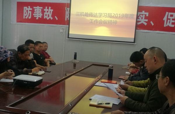 2019年4月11日,三機(jī)處在博瓦電站項(xiàng)目部組織全處職工學(xué)習(xí)貫徹工程局2019年工作會(huì)議精神,會(huì)議由支部副書記、工會(huì)主席閻旭主持。