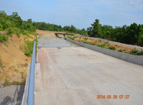三枯期 (2013.10~2014.6) 擋水大壩主要完成了河床壩段約200m的壩基開挖、基礎處理、壩體填筑到設計高程,以及壩頂1800m防浪墻砼澆筑,目前正進行壩頂公路和壩后梯等收尾工作;引水渠分成3個工區,完成主渠3800m,三條支渠11974m,斗渠44條共26054m,渡槽3座以及分水閘、節制閘、交通橋涵等附屬建筑。