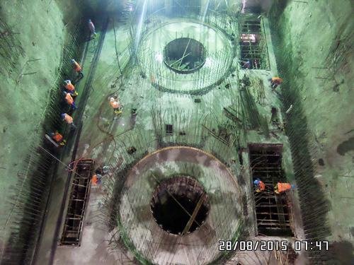 厄瓜多爾TP水電站一級地下廠房機組結構有蝶閥層、水輪機層、發電機層和主地坪層共四層。1#、2#機組如期達到發電機層,為按時完成1#、2#機組節點工期奠定了基礎。