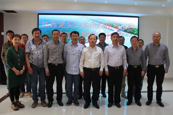 2015年10月28日上午,我局與江西龍頭山航電樞紐投資開發有限公司正式簽定江西龍頭山水電站樞紐工程施工合同,江西龍頭山航電樞紐投資開發有限公司董事長曾建斌,我局局長、黨委書記鄔清富分別代表建設方和施工方在合同文件上簽字。江西龍頭山航電樞紐投資開發有限公司副總經理陳建民及合同部門負責人胡木和、辦公室主任張傲宇,長江勘測規劃設計研究有限公司龍頭山水電站樞紐工程監理負責人及現場監理代表,我局黨委成員、副局長黃永沾,黨委成員、局長助理鄒世界,黨委成員、辦公室主任溫慶生,經營處處長丁毅,副總經濟師、經營處副處長唐德全,造價工程師傅蕓蕓出席簽訂儀式。