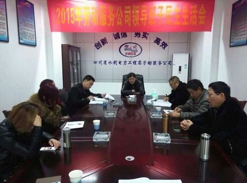12月11日下午,勞服司在汽修廠辦公室召開了2015年勞動服務公司領導班子民主生活會。勞服司班子成員及全體黨員、職工代表參加了會議。勞服司黨支部書記、經理陳章主持會議。