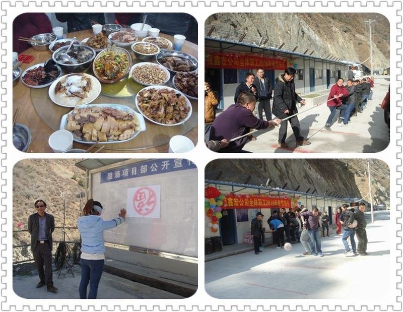 為豐富固滴項目工地職工的文娛生活,使春節(jié)期間留在工地繼續(xù)奮戰(zhàn)的全體員工能感受到家的溫馨和氛圍,項目部通過精心組織和策劃,開展了一場別開生面的歡度春節(jié)活動。2016年2月8日,鑫宏工程公司在固滴項目部開展2016年歡慶春節(jié)活動,共同在這個辭舊迎新的日子展望未來、攜手共創(chuàng)固滴項目嶄新的一年。