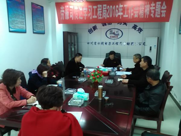 2016年4月1日上午,勞服司組織全體干部職工在勞服司汽修廠會議室集中傳達學習工程局2016年工作會議精神。
