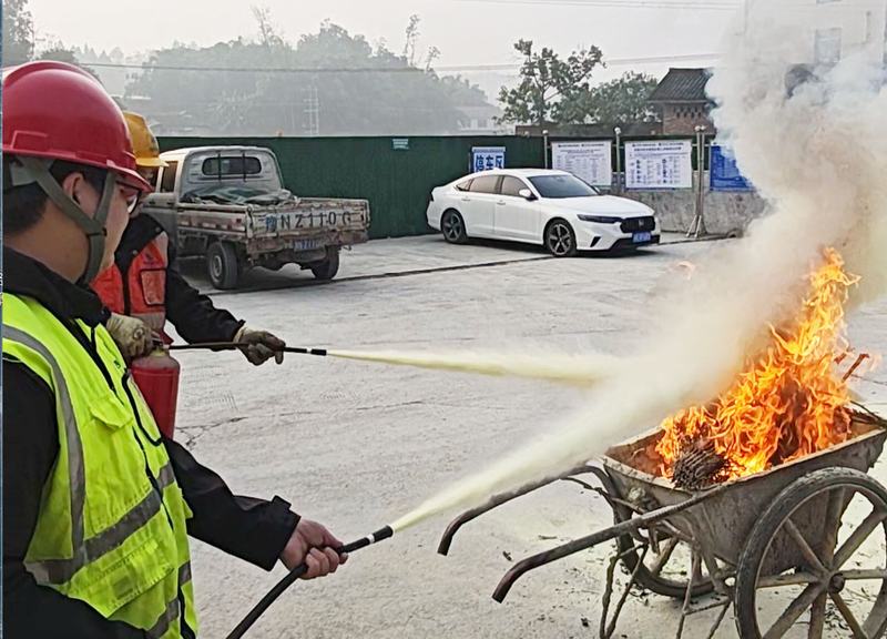 應急演練緊扣隧洞施工與營地生活兩大場景。施工現場,項目部安全人員重點講解滅火器材使用要點,確保員工熟練掌握初期火災撲救技能;營地以模擬火情為背景,全員聞令而動,迅速彎腰低姿、捂住口鼻,按預定路線有序疏散至安全點。演練還組織學習了不同類型滅火器的適用場景,夯實了全員實操基礎。