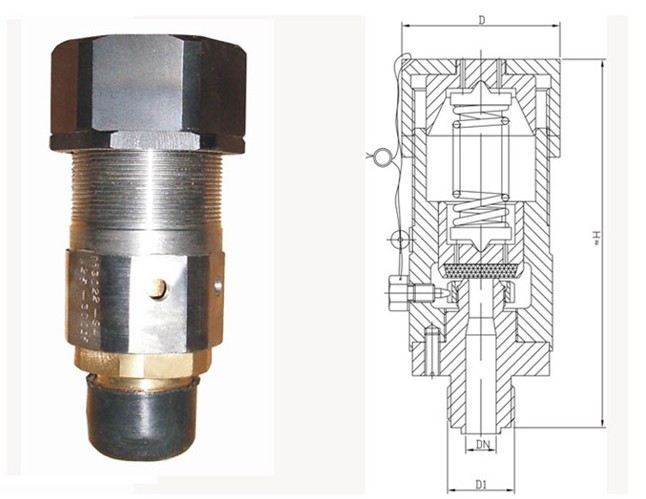 安全閥(泄壓閥)的工作原理及外形結構,上圖展示的即為安全閥的簡易結構圖,我們可以看到安全閥的縱向剖面圖,此配件安裝于羅茨風機的機體上面,當羅茨風機壓力超高時,安全閥會在壓力的推動下,自動泄壓,保證羅茨風機的穩定運行。