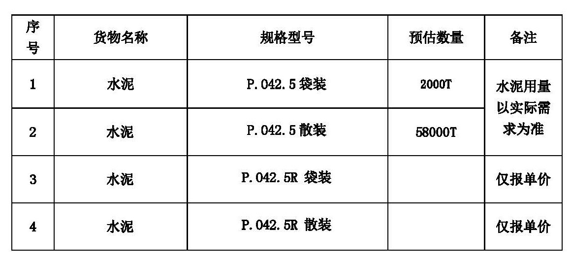 采購范圍:水泥總用量約6.0萬噸,采購數(shù)量以實(shí)際需求數(shù)量為準(zhǔn)。工程施工總工期為42個(gè)月。