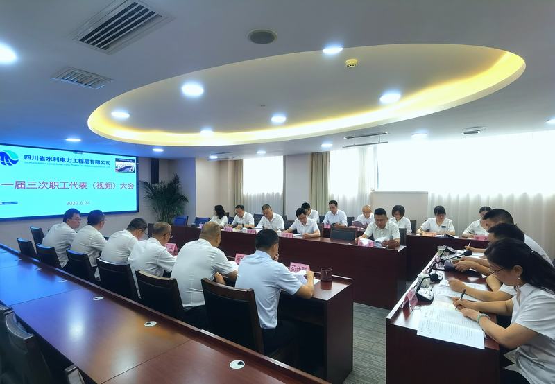 2022年624日,工程局公司召開第一屆第三次職工代表(視頻)大會,主會場設在公司成都總部會議室,分會場根據職工代表分布分別設置在總部資陽辦公區、都江堰市辦事處、虎渡溪項目部、小井溝工程項目部、龍塘水庫項目部、亭子口工程三分公司項目部、亭子口工程四分公司項目部、井研供水管網改擴建工程項目部。來自公司總部及所屬各單位的82名職工代表、5名列席代表參加會議。公司黨委委員、職工董事、工會主席夏永紅主持會議。